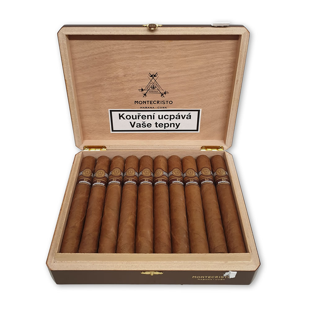 First release. Excellent condition. Czech Republic tax stamp. Montecristo 80 Aniversario second band. This unique vitola was specially selected to commemorate the establishment of the Montecristo brand.