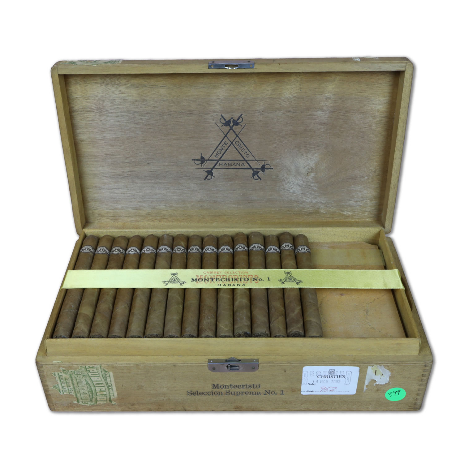 Ex. Dunhill of London. Christie's stamp. Good condition and aroma. 3 cigars with foot damage. 3 cigars with minor wrapper damage.