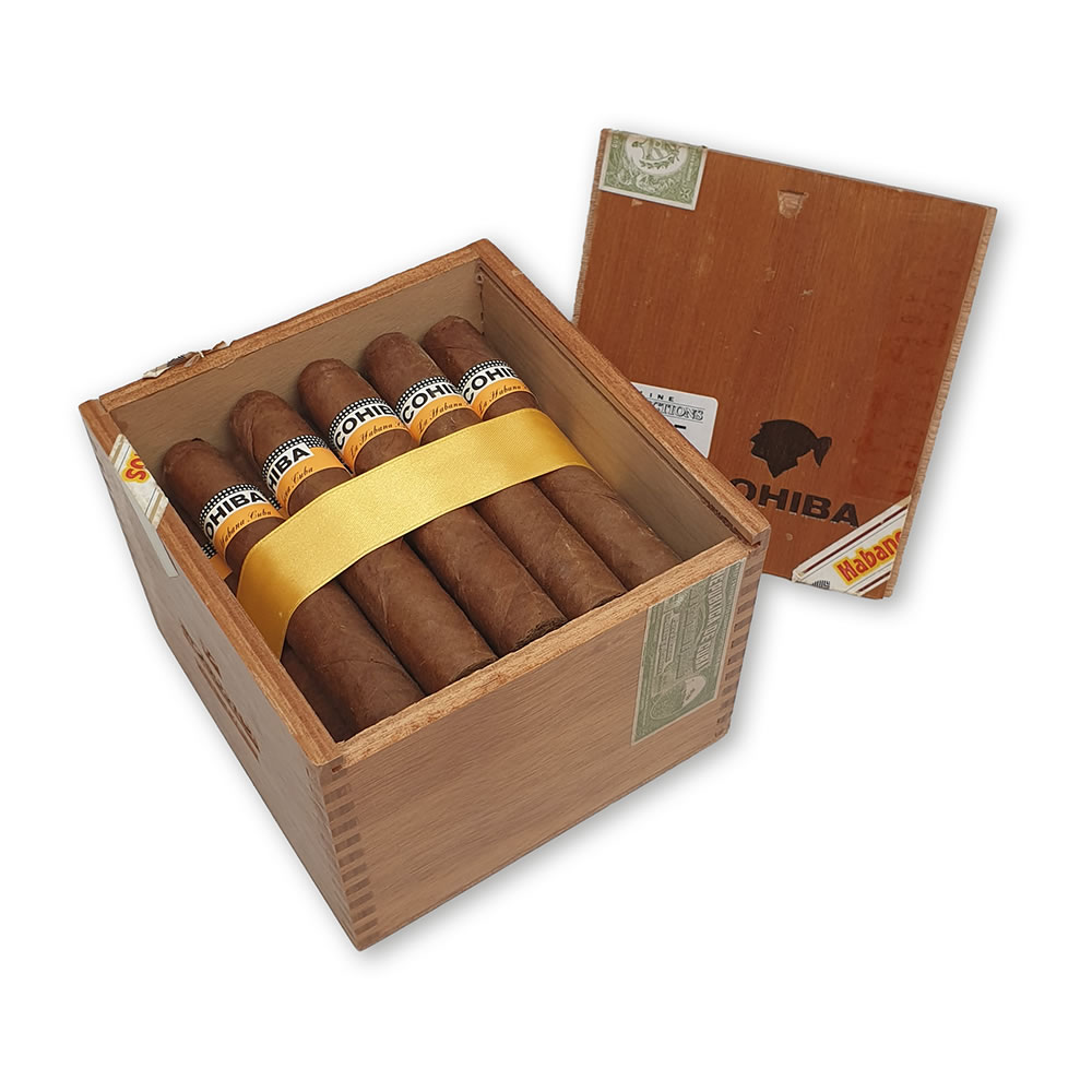 English Market Selection. Good condition. 2 cigars with minor wrapper damage. Cohiba band C.