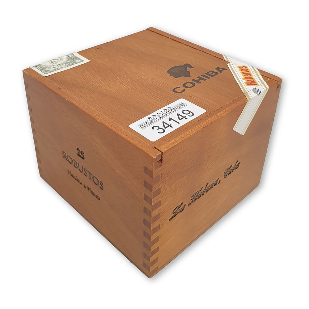 Very good condition, appearance and bouquet. Cohiba band D. 2 cigars with minor foot damage. This box was delivered to C.Gars sealed, wrapped in glassine paper and was recently opened for inspection.